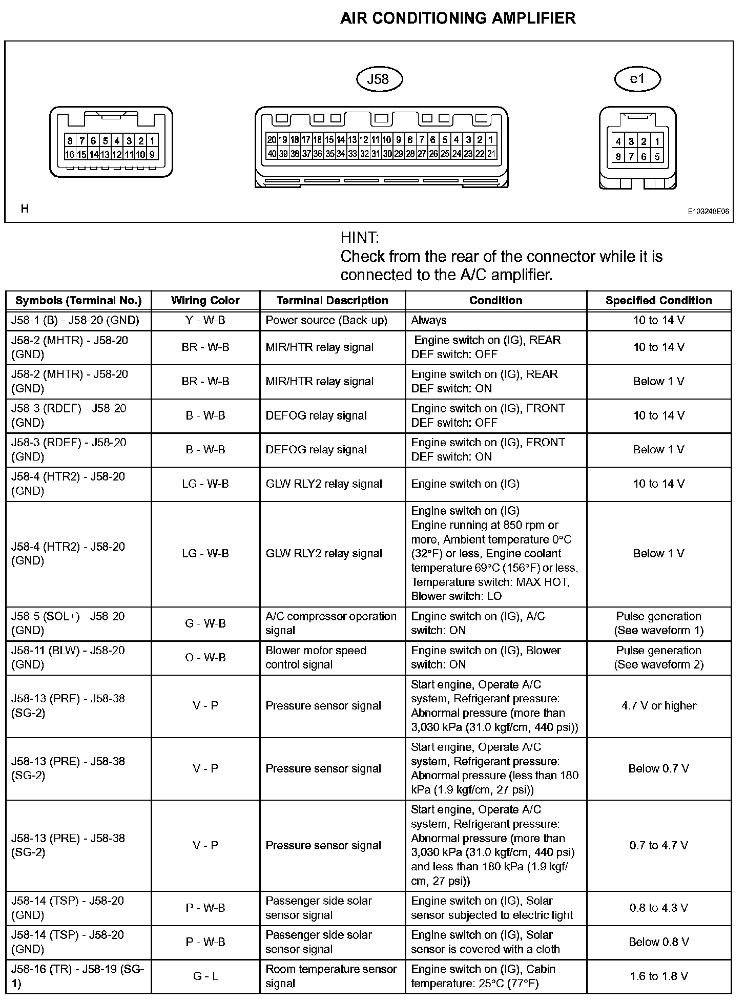 Terminals Of Control Module/Pinouts - Air Conditioning Amplifier (Part 2):