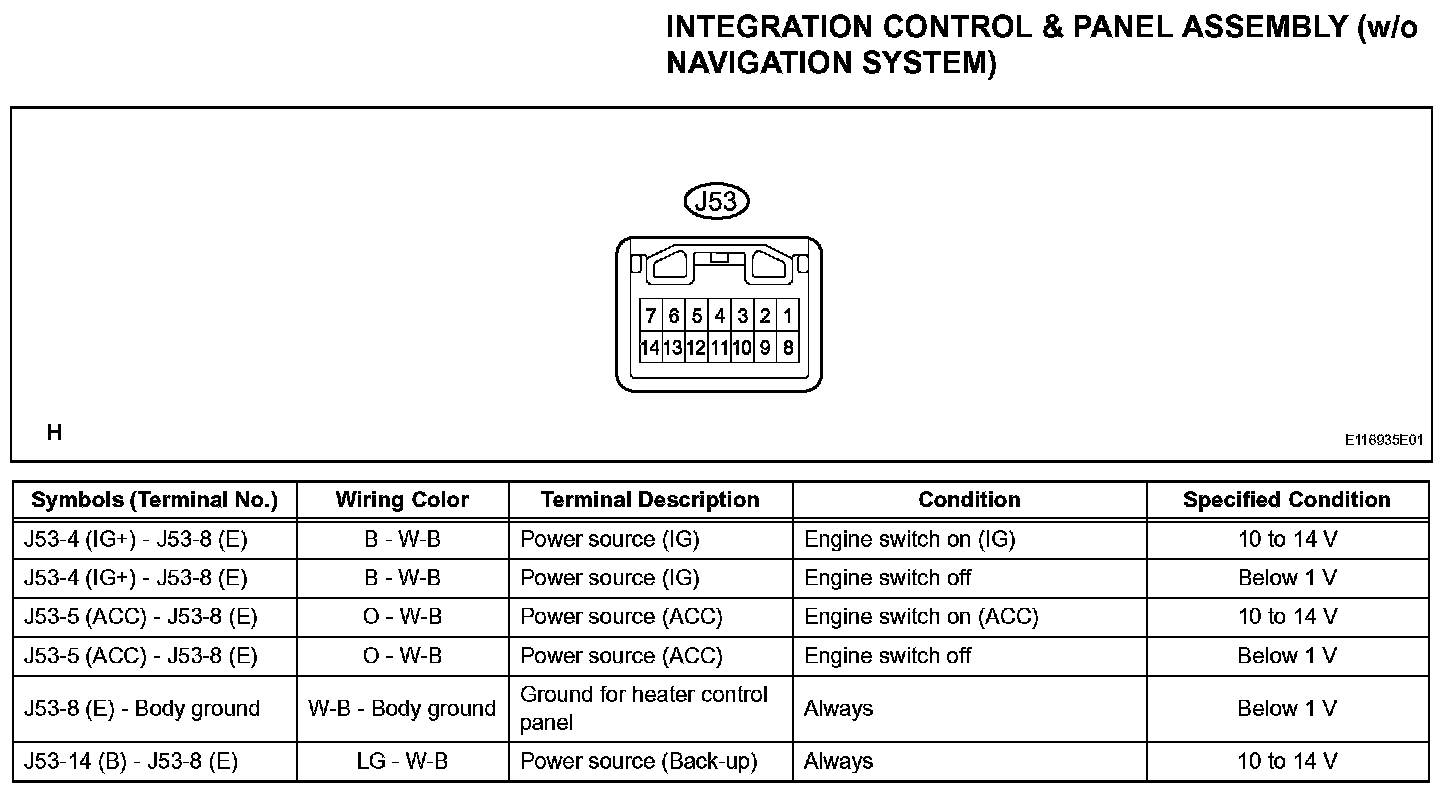 Terminals Of Control Module/Pinouts - Integration Control & Panel Assembly (w/o Navigation System):