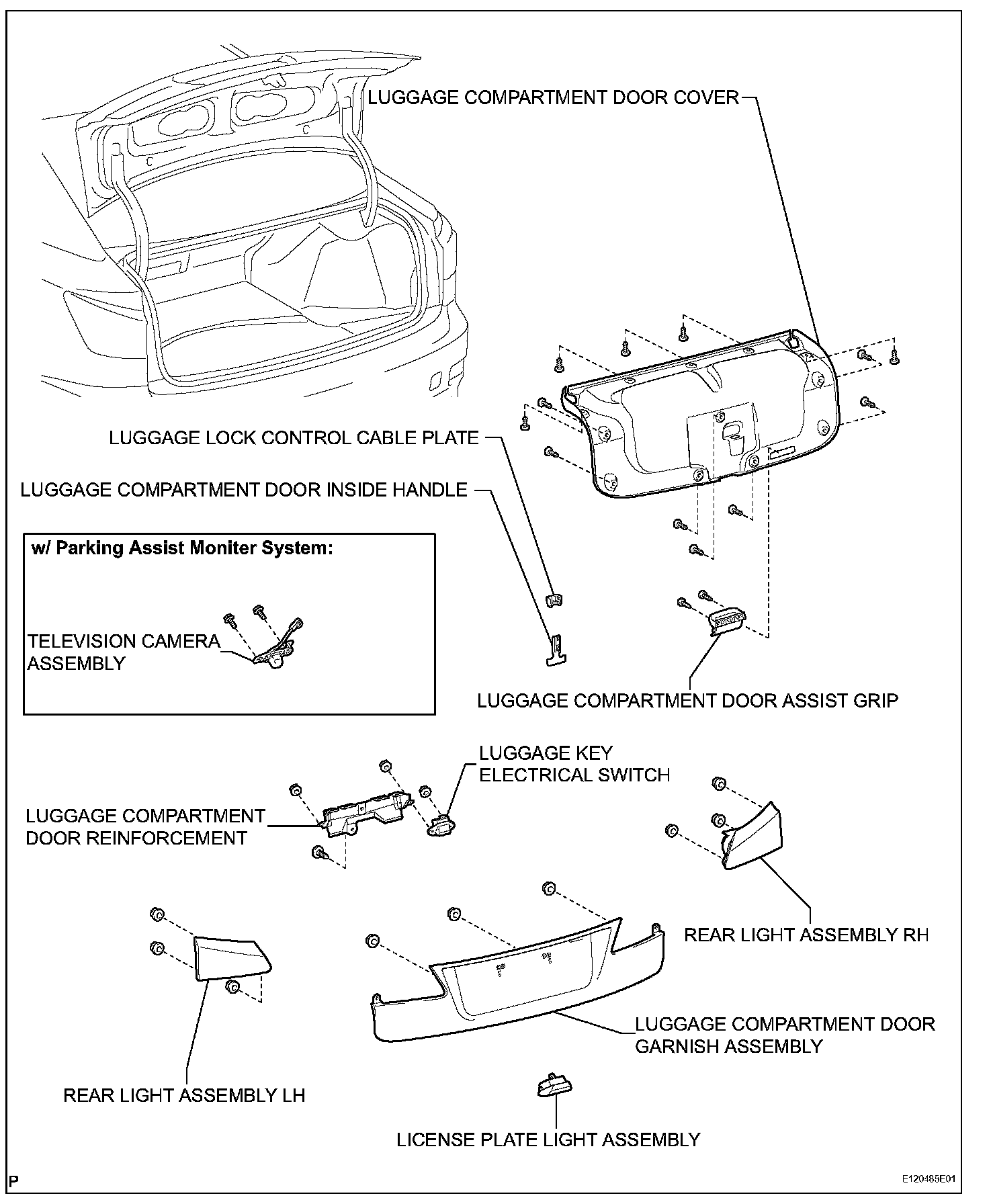 7. REMOVE TELEVISION CAMERA ASSEMBLY (w/ Parking Assist Monitor System)