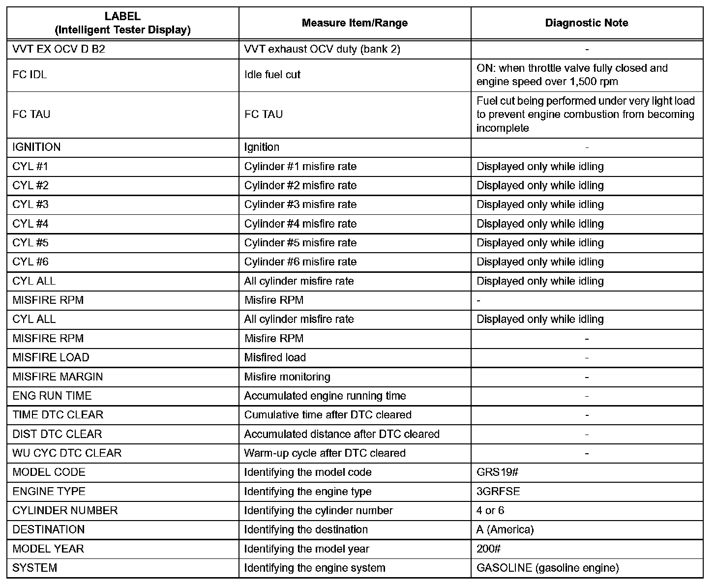2. LIST OF FREEZE FRAME DATA