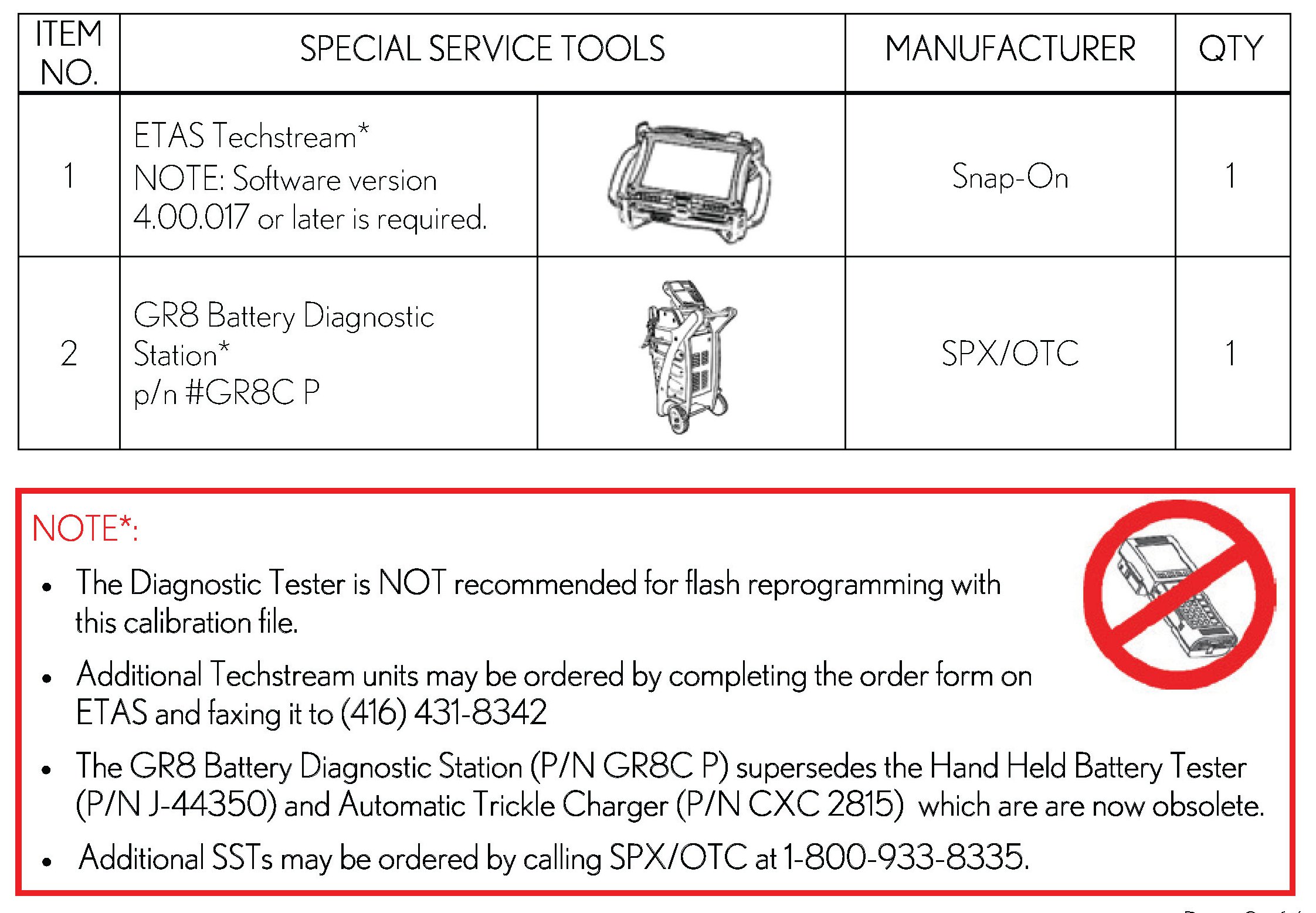 - For details on how to use the GR8 Battery Diagnostic Station, refer to the GR8 Battery Diagnostic Station Instruction Manual located on ETAS/TIS library > Tools > tools and equipment > GR8 Battery Diagnostic Station Instruction Manual.