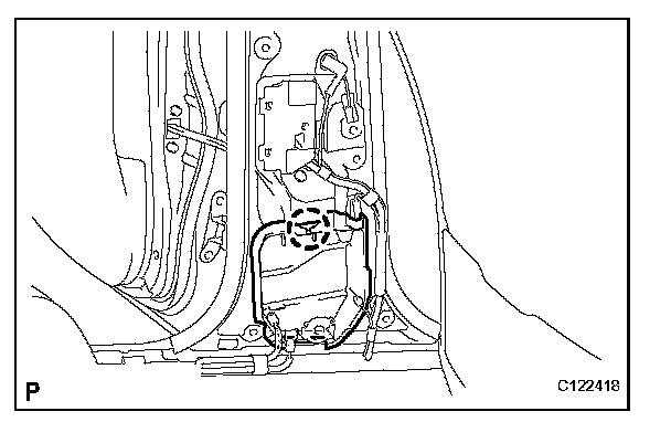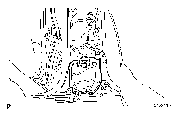 - When installing the side airbag sensor, be careful that the SRS wiring does not interfere with other parts and that it is not pinched between other parts.