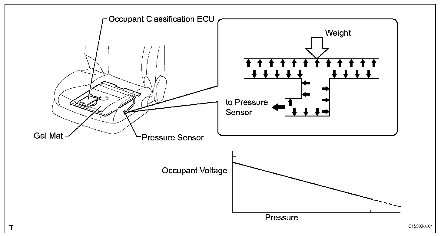 When weight is applied to the gel mat, the pressure applied through the silicone to the pressure sensor changes. The pressure sensor converts these changes into voltages and transmits them to the occupant classification ECU.