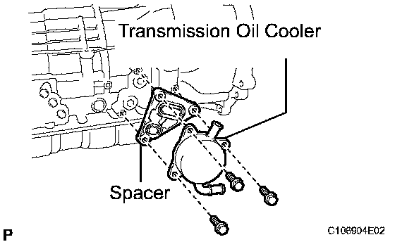 a) Remove the 3 bolts, transmission oil cooler and spacer.