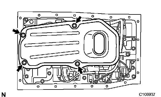 b) Remove the 4 bolts and valve body oil strainer assembly from the valve body.