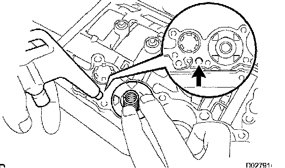 HINT: Slowly drive out the spring pin so that it does not fall into the transmission case.