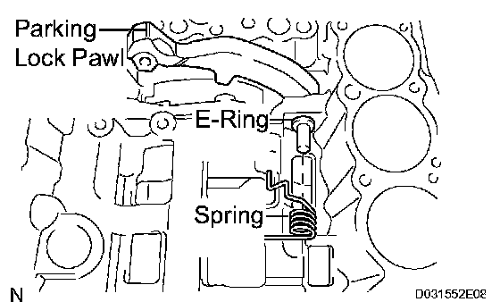 a) Pullout the parking lock pawl shaft from the front side, then remove the lock pawl and the spring.