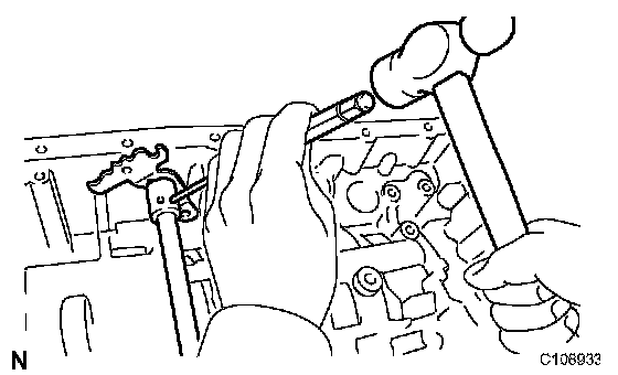 b) Using a pin punch and a hammer, drive out the spring pin.