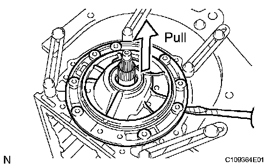 a) Remove the clutch drum and input shaft assembly from the transmission case.