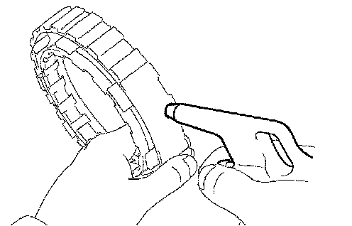a) Hold the 1st and reverse brake piston and blow compressed air (392 kPa, 4 kgf/cm2, 57 psi) into the transmission case to remove the brake piston.