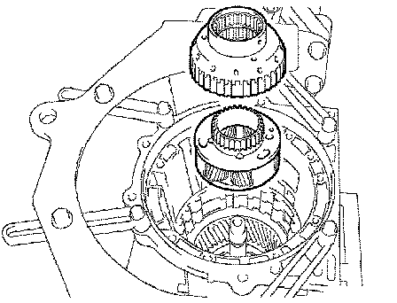 b) Remove the center planetary ring gear and the front planetary ring gear flange from the front planetary ring gear.