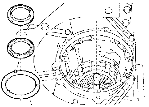 c) Remove the thrust needle roller bearing from the front planetary ring gear flange.