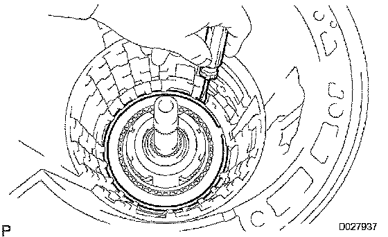 a) Remove the front planetary ring gear from the transmission case.
