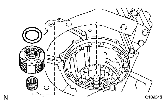 a) Remove the one way clutch assembly and the No.1 planetary carrier thrust washer from the transmission case.