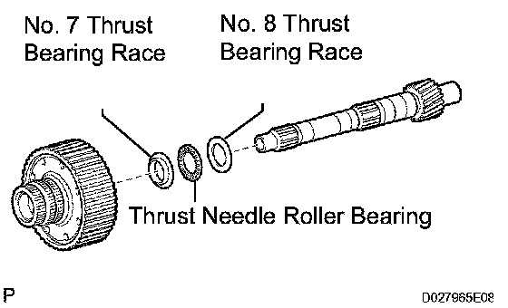 a) Remove the No.8 thrust bearing race, the thrust needle roller bearing, the No.7 thrust bearing race and the planetary ring gear flange from the intermediate shaft.