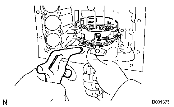 a) Hold the No.2 brake piston and apply compressed air (392 kPa, 4 kgf/cm2, 57 psi) to the transmission case to remove the No.2 brake piston and the No.2 brake cylinder.