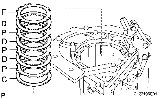 a) Install the flange, the 3 discs, the 3 plates and cushion plate to the transmission case.