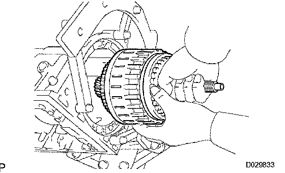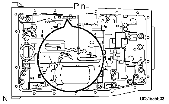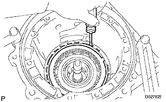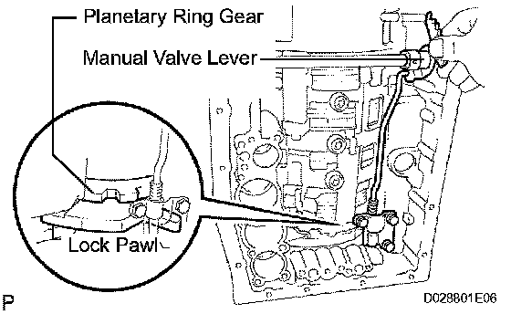 b) Shift the manual valve lever to the P position, and confirm that the planetary ring gear is correctly locked up by the lock pawl.