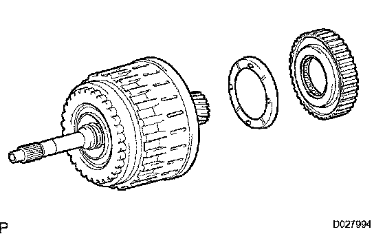 d) Hold the input shaft, and lightly press the oil pump body to slide the oil seal rings into the overdrive direct clutch drum.
