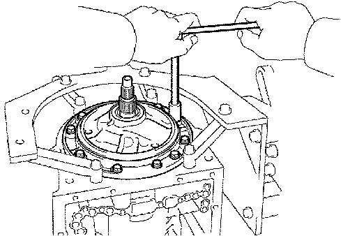 c) Place the oil pump through the input shaft, and align the bolt holes of the oil pump assembly with the transmission case.