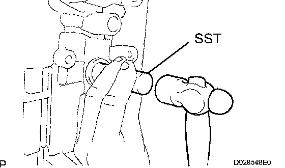 a) Using SST and a hammer, drive in 2 new oil seals.