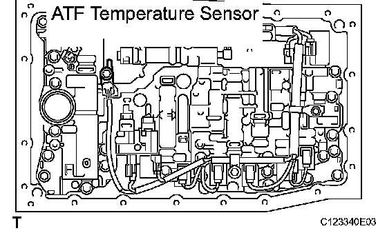 g) Install the ATF temperature sensor and sensor clamp with the bolt.
