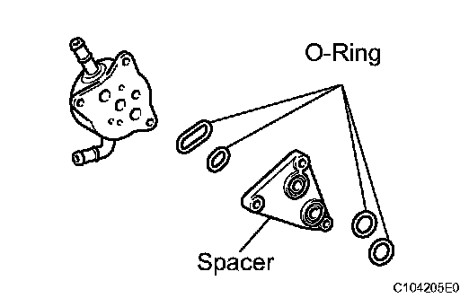 a) Coat 2 new O-rings with ATF, and install them to the spacer.
