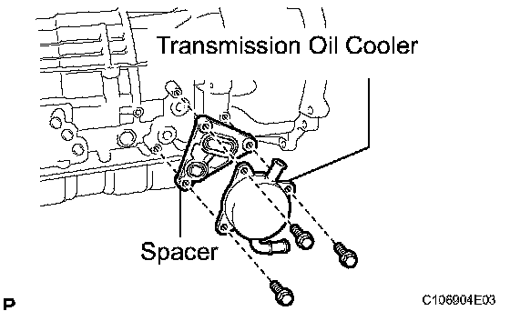 b) Install the spacer and transmission oil cooler with the 3 bolts.