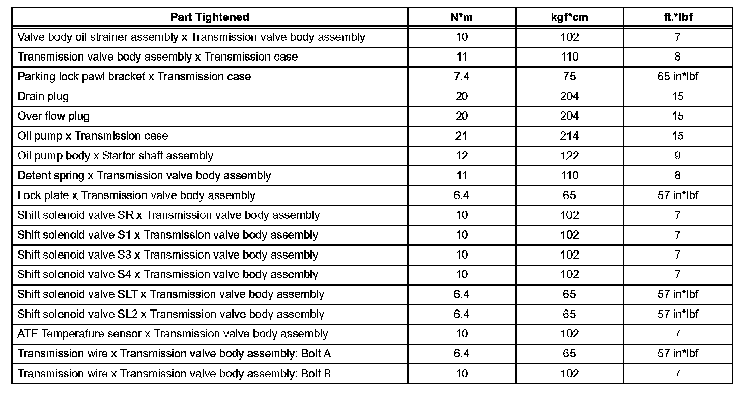 Automatic Transmission-Torque Specifications (Part 1):