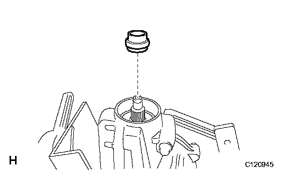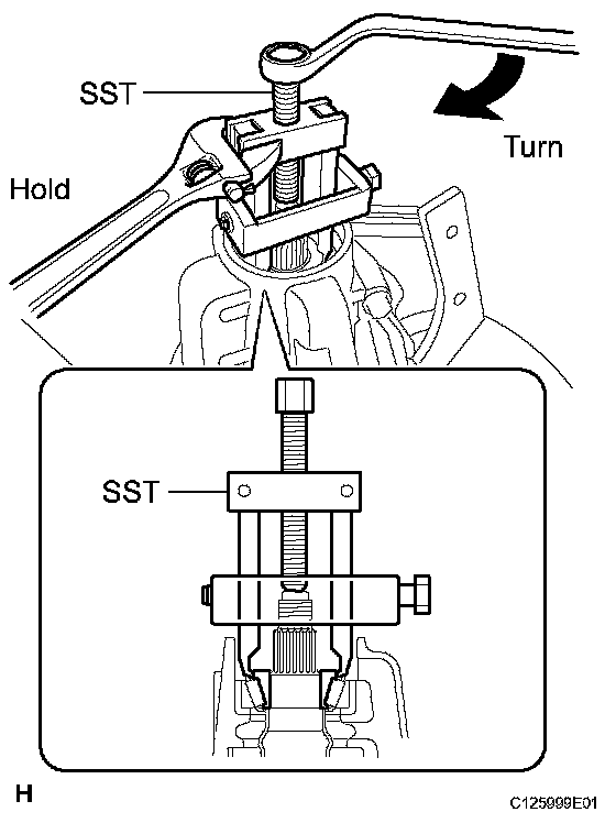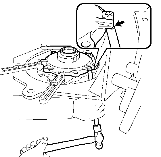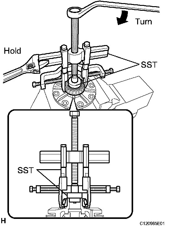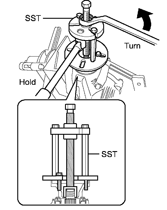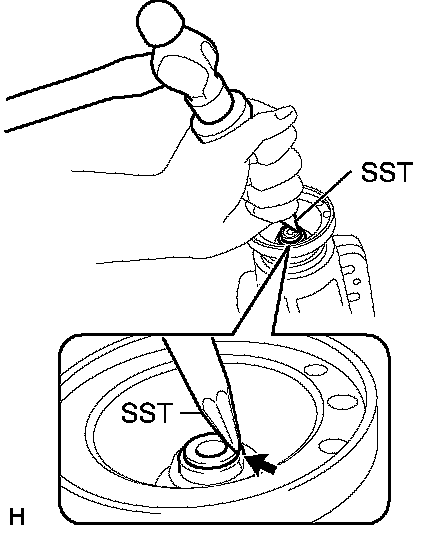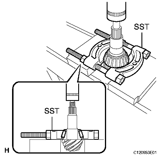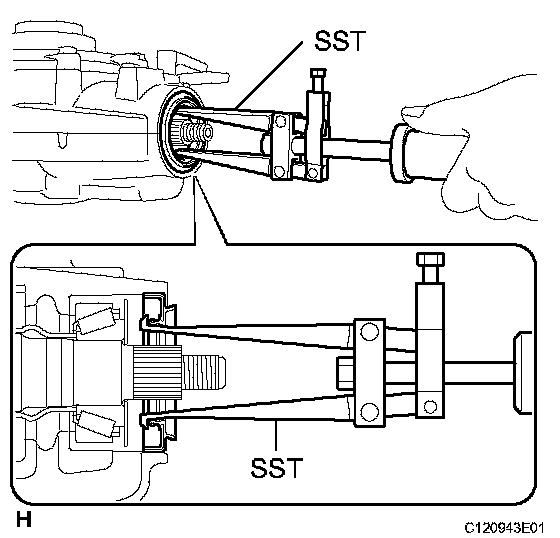 ^ Hook the SST claw from the dent of the differential case to the bearing inner race.