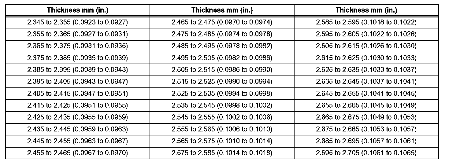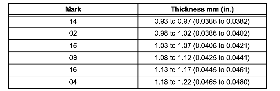 j) If the teeth are not contacting properly, use the table to select a proper adjust shim for correction.