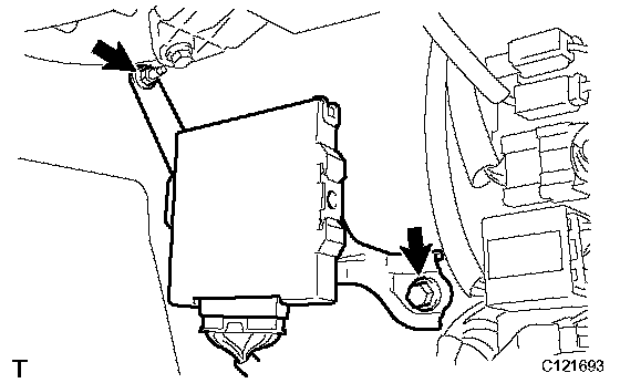 b) Install the 4WD control ECU with the bolt and nut.