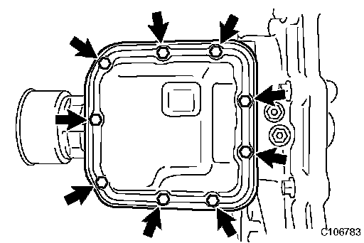 NOTICE: Do not damage the contact surface of the transfer oil pan.