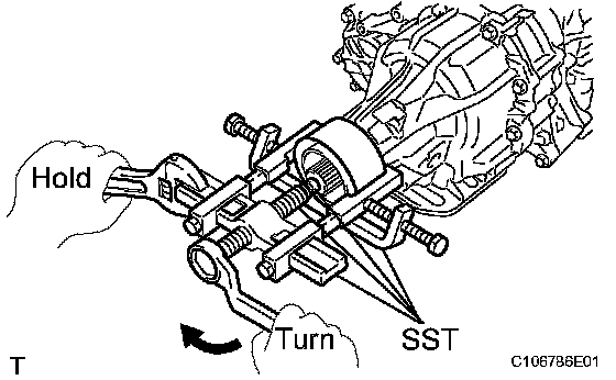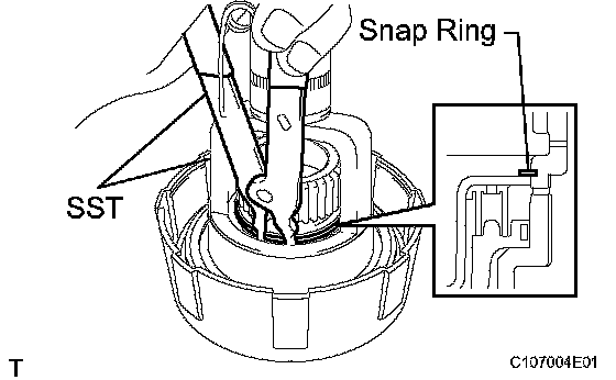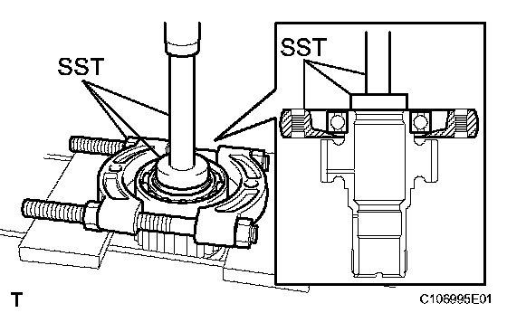 a) Place SST on the center differential clutch pressure balancer, and compress the return spring with a press.