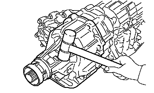 b) Using a plastic hammer, tap the transfer case to remove it.