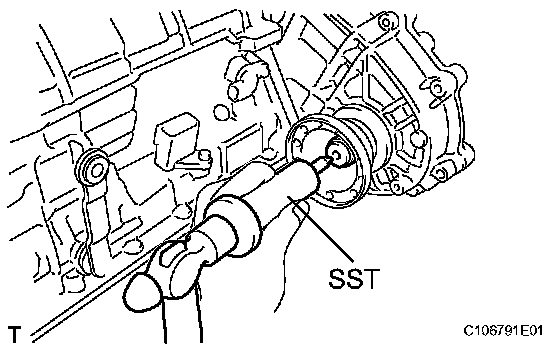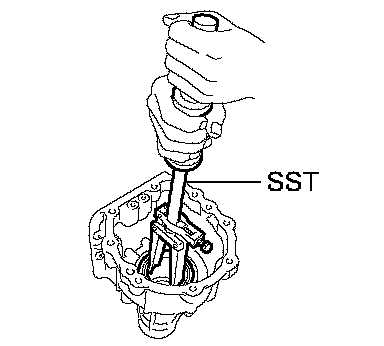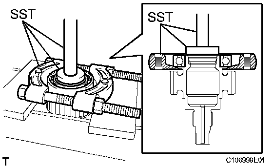 a) Using SST, remove the transfer case bearing from the transfer case.