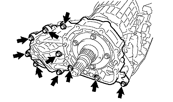 HINT: If necessary, tap the transfer chain case front with a plastic hammer to loosen and remove it.
