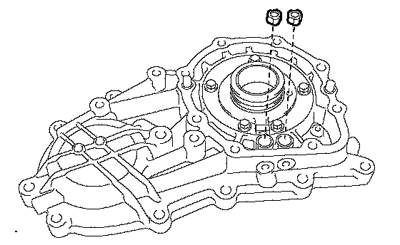 b) Tap the 3 protrusions of the transfer chain case gently with a brass bar and hammer to loosen, and remove it.