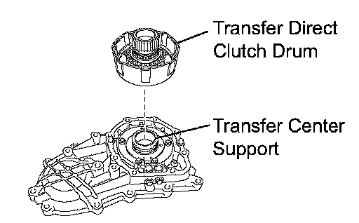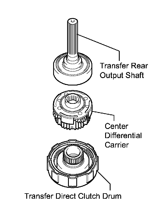a) Remove the center differential carrier from the transfer rear output shaft and transfer direct clutch drum.