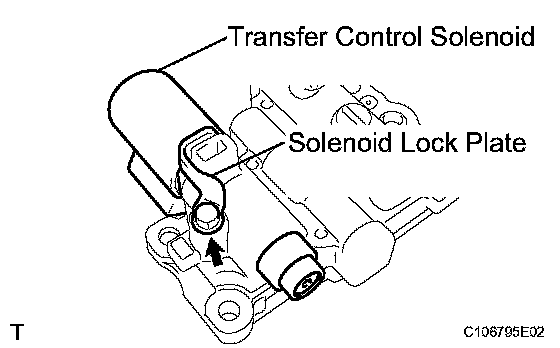 a) Remove the bolt, solenoid lock plate and transfer control solenoid.