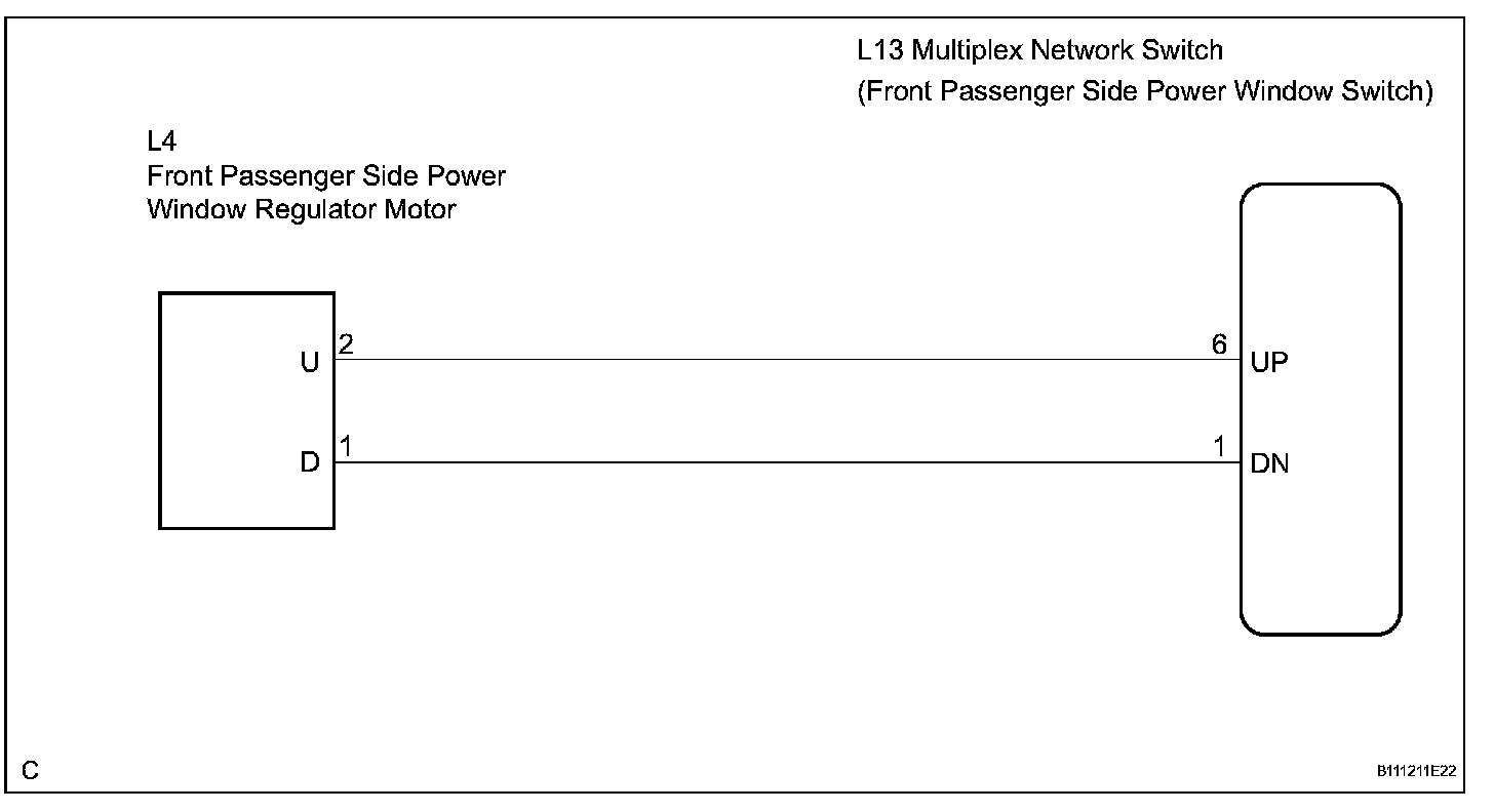 Front Passenger Side Power Window Motor CircuitDESCRIPTION