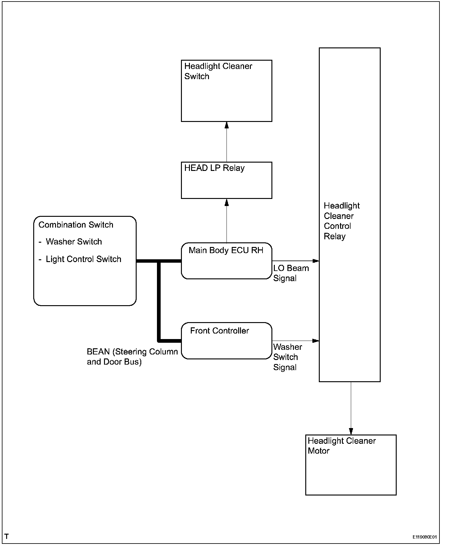 e. The washer switch operation signal transmitted by the combination switch ECU is received by the main body ECU LH.