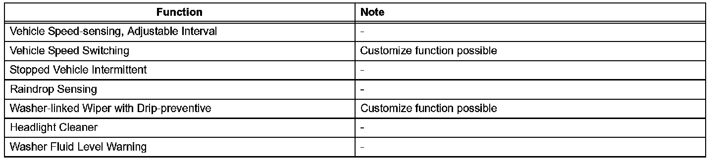 a. The wiper and washer system may have some of the given functions: