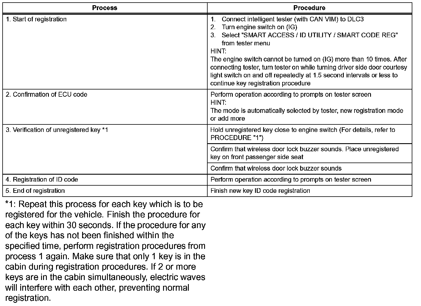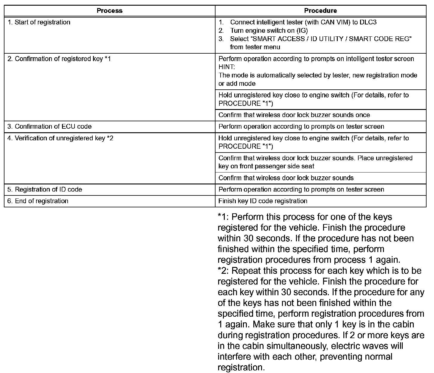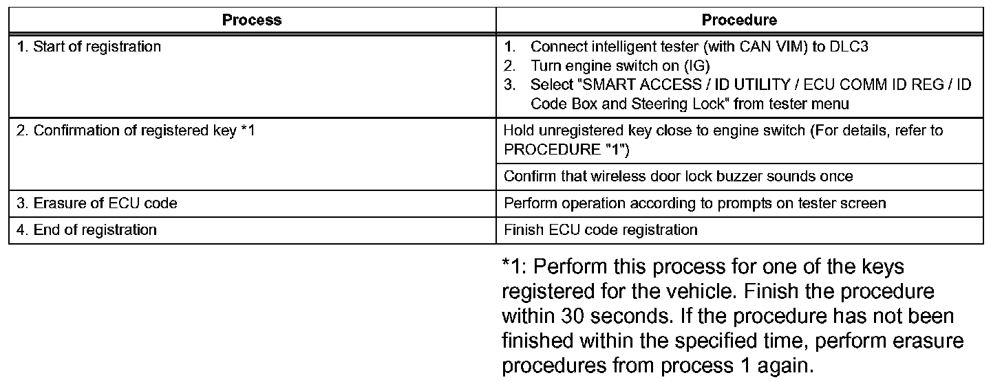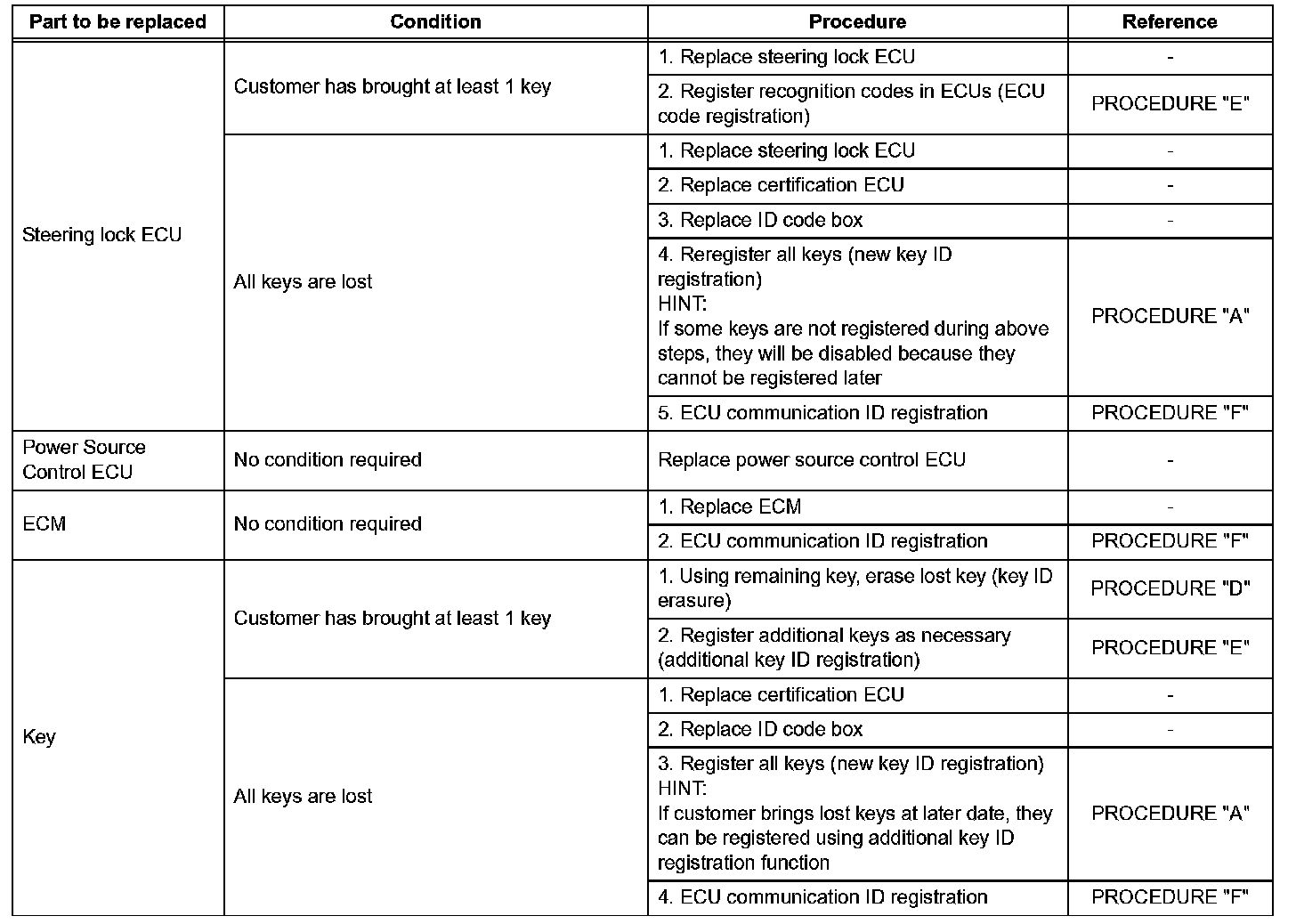 - Code registration is needed when the certification ECU, ID code box, steering lock ECU or key is replaced with a new one.