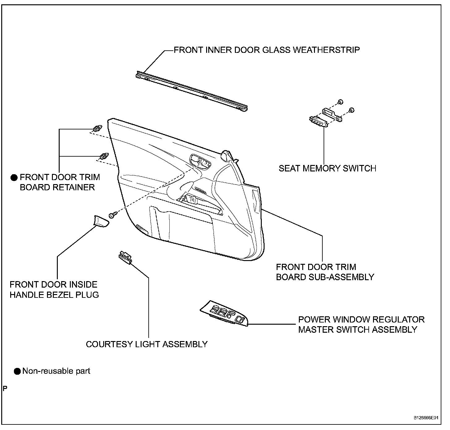 1. REMOVE FRONT DOOR INSIDE HANDLE BEZEL PLUG LH