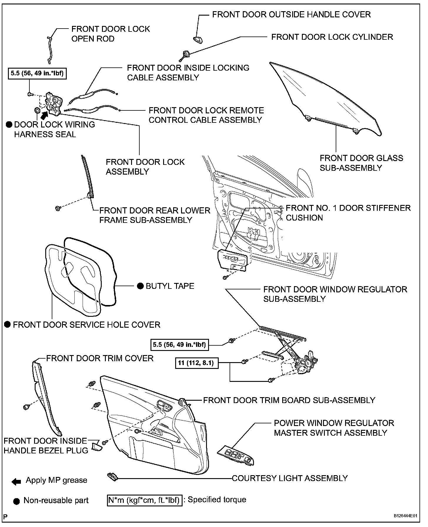 Torque: 5.5 N.m (56 kgf.cm, 49 in.lbf)
