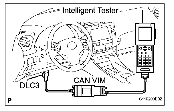 HINT: Connect the cable of the intelligent tester (with CAN VIM) to the DLC3, turn the engine switch on (IG) and attempt to use the tester. If the display indicates that a communication error has occurred, there is a problem either with the vehicle or with the tester.