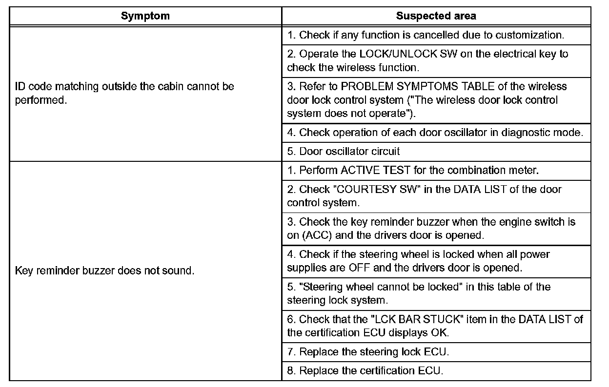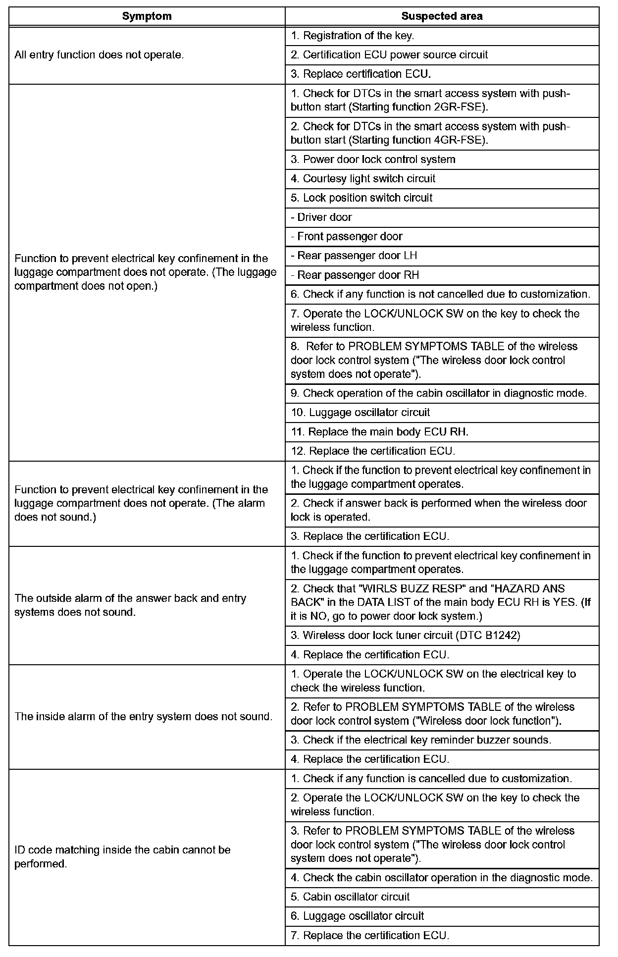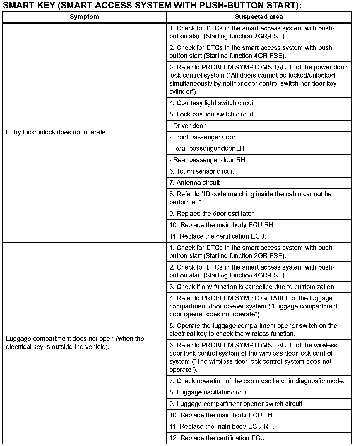 Problem Symptoms Table - Smart Key (Smart Access System With Push-Button Start) (Part 2):