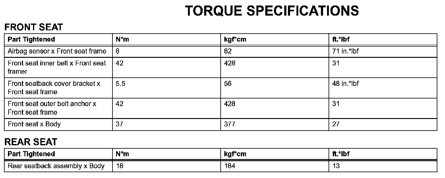 Seat - Torque Specifications: