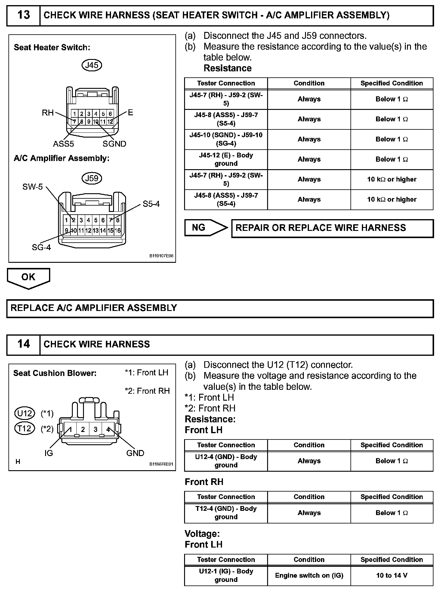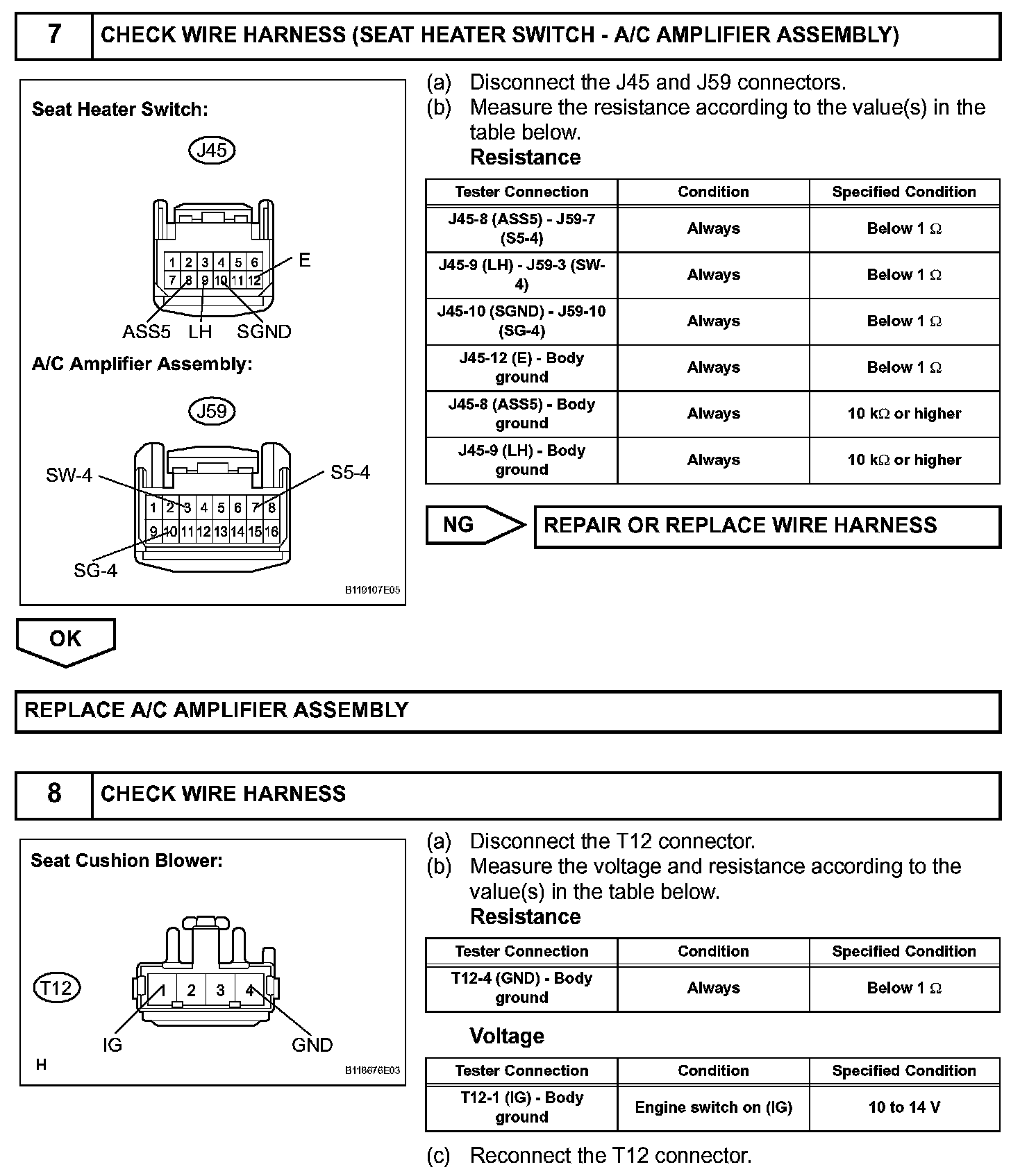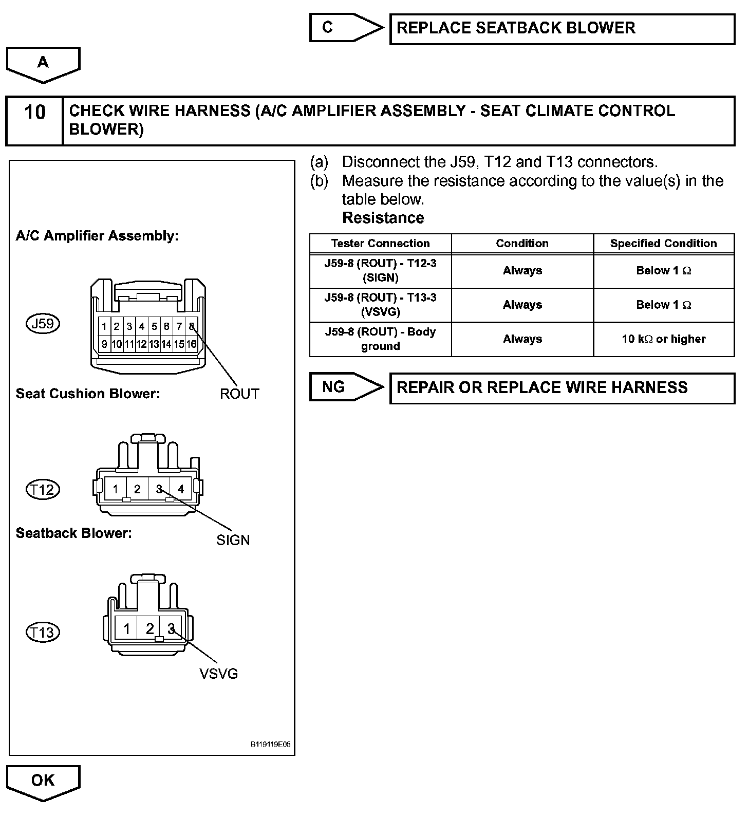 The A/C amplifier assembly receives seat position signals when the engine switch is on (IG), and then transmits airflow amount signals to each seat climate blower.